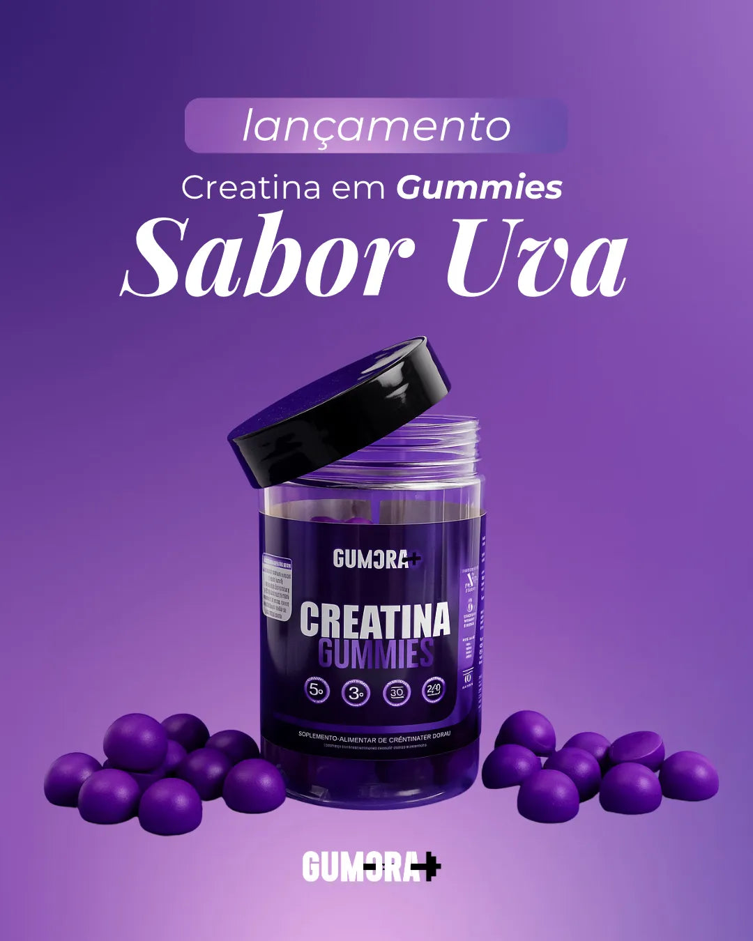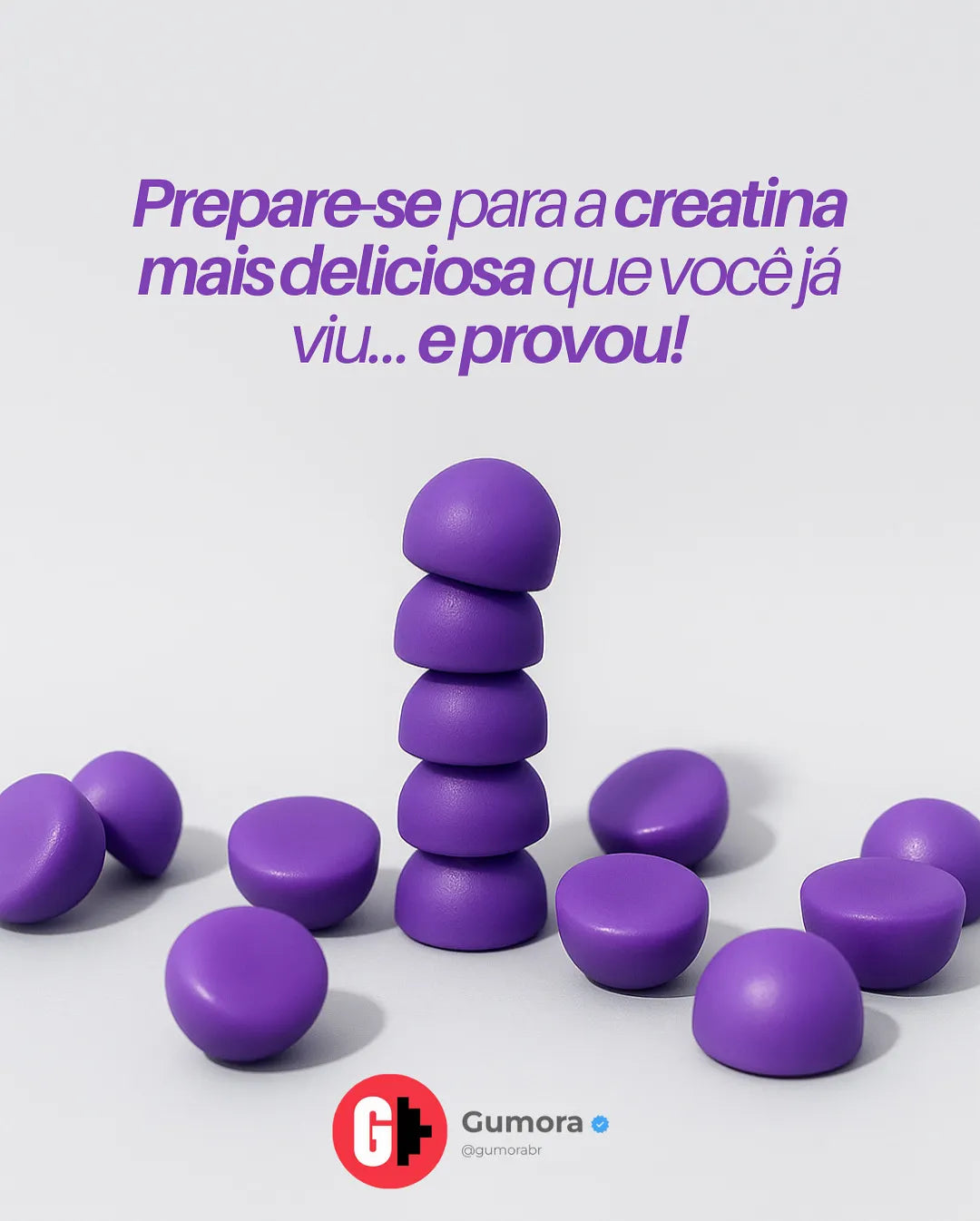 ✨ Diga olá à nova era da suplementação: Gumora , a creatina que você vai amar tomar. Sabor de UVA, com zero açúcar e 3g de creatina monohidratada por goma.